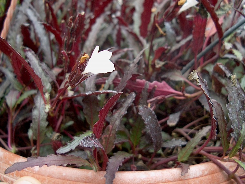 vstřícné; úzce kopinaté, 6-9 x 1-1,5 cm velké, se zubatým okrajem; tmavozelené s červenošedým nádechem, lesklé; rub listu výrazně tmavě purpurový
