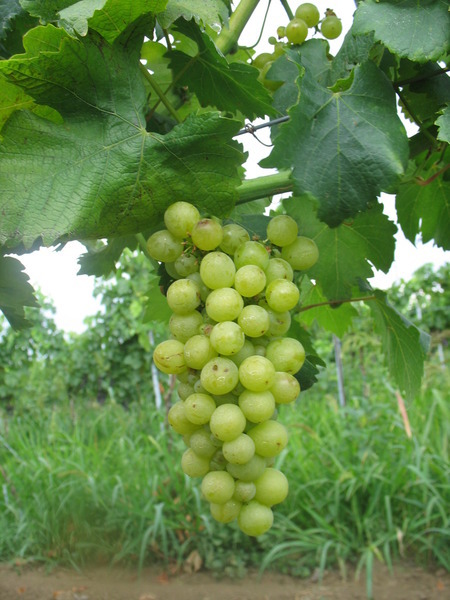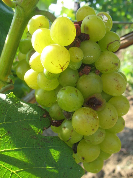 - středně velký, válcovitě kuželovitý, středně hustý hrozen; bobule je středně velká, podlouhle vejcovitá, žlutozelená, při plné zralosti s hnědými skvrnkami na osluněné straně