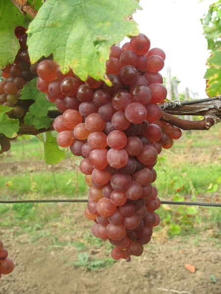 - středně velký až velký, kuželovitý, hustší hrozen s křidélky; bobule kulatá, středně velká, růžová až červenofialová
