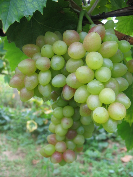 menší až středně velký, kuželovitý, hustší hrozen; bobule je středně velká, elipsovitě protáhlá do špičky, zelenkavá s růžovým líčkem