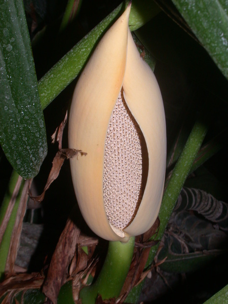 - úžlabní bělavé, později zelenožlutécylindrické palice s oboupohlavnými kvítky, až o.2 m dlouhé a chráněné člunkovitými, temně žlutými toulci; vyvíjeny jsou z listových paždí po několika