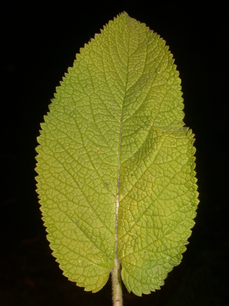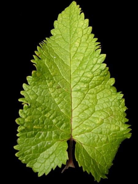 bazální řapíkaté a trojúhle srdčité, lodyžní více kopinaté, hrubě zubatě vroubkované, svrchu drsně chlupaté (nevětvenými trichomy), vespod s chlupy hvězdicovitými nebo olysalé