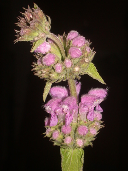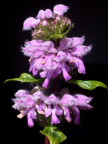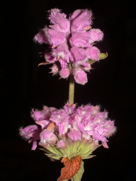 zygomorfní, různoobalné, pětičetné, srostloplátečné, dvoupyské se svrchním pyskem zevnitř hustě vousatým, purpurové, plstnatě oděné, s dvoumužnými tyčinkami s přívěsky