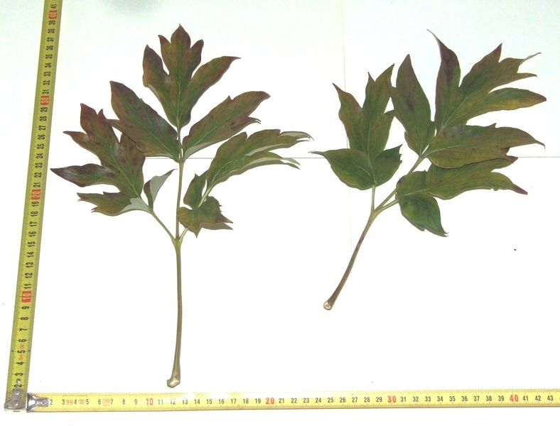 střídavé, 2 x trojčetné, dlouhé, malé, řídké, lístky eliptické, až vejčité, terminální lístek nepravidelně zubatý, tmavě zelené s načervenalým nádechem