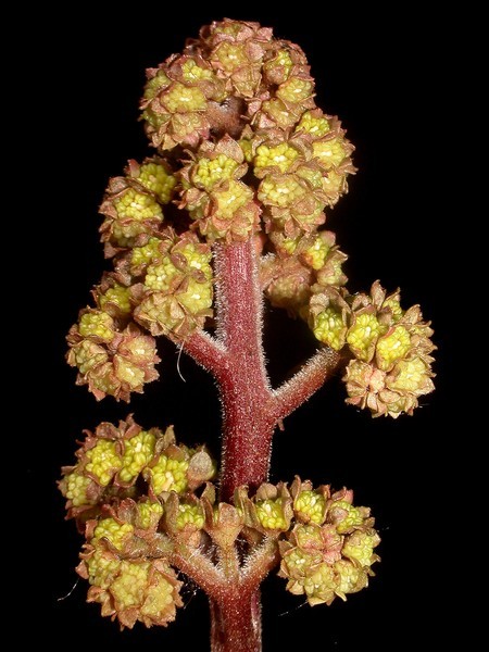 - drobné, oboupohlavné, haplochlamydeické, pětičetné až sedmičetné s úzce vejčitými, mléčně bílými sepaly, diplostemonické s polospodními semeníky