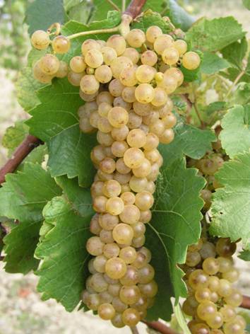 - středně velký, válcovitý, hustší hrozen s křidélky; bobule kulatá, malá až středně velká, zlatožlutá, při přezrávání s hnědavým líčkem a tečkou po blizně