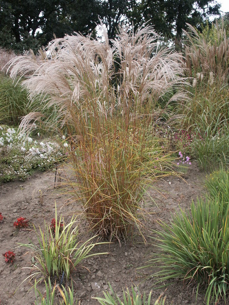 - stébelnatá tráva s krátkými oddenky, tvoří hustý trs listů s velkými, latami vyrůstajícími vysoko nad listy; středně vysoký kultivar v listu vysoký přibližně 90 - 100 cm, v květu 170