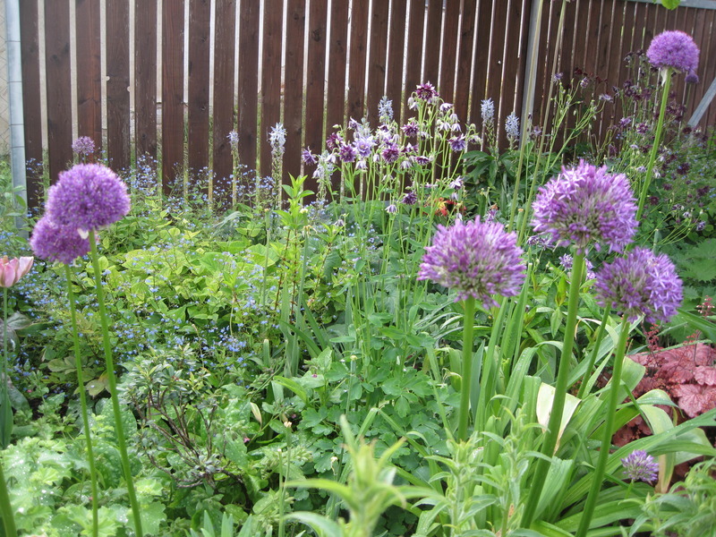 Použití Allium giganteum v trvalkovém záhonu. Foto: T. Kuťková