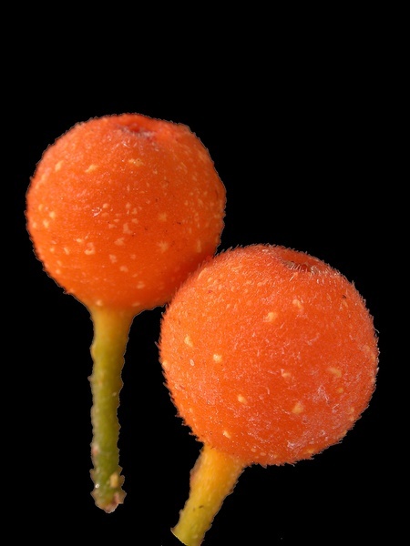 - neveliká, globosní, bradavičnatá a roztroušeně pýřitá receptakula (fíky), žlutá, oranžová nebo rumělkově červená, soliterní i párovitá, na starém dřevě též v chomáčích