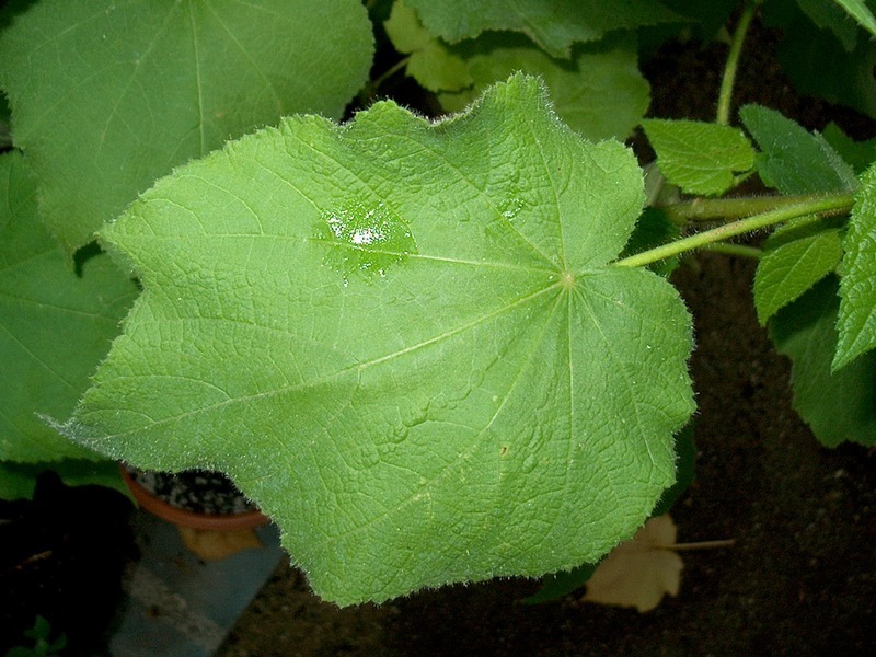 - střídavé; široce vejčité až srdčitě vejčité, 15–25 cm dlouhé, na silných výhonech i větší; od báze 3–9nervé, svrchu jasně zelené, naspodu matně světle zelené; velmi nestejnoměrně zubaté, vrcholek špičatý až zašpičatělý, báze hluboce srdčitá; oboustranně s dlouhými a měkkými chlupy; řapíky 10–15 cm dlouhé