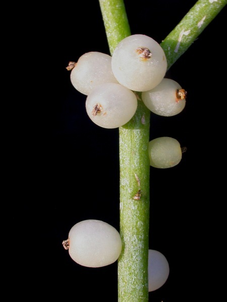 - okrouhlé, průsvitně bílé nebo růžově naběhlé bobule velikosti hrachu, s lepkavou slizovitou dužninou