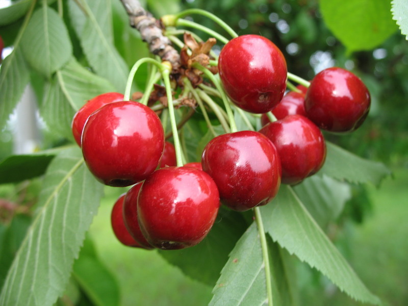 malé (3,5 g), srdčité až kulovité, tmavočervené, lesklé, dužnina šťavnatá, navinule sladká, velmi dobrá, barví