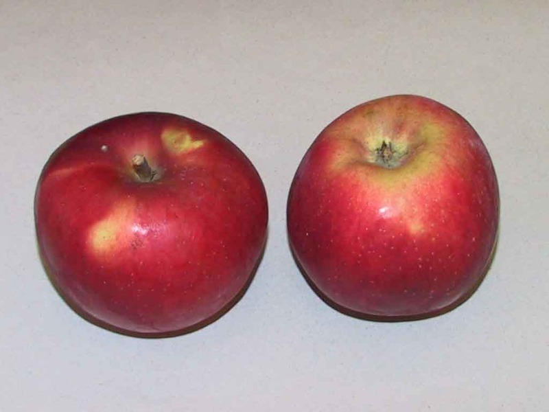středně velké, ploše kulovité, zelenavé s rozmytou tmavou červení, středně šťavnaté a aromatické, chutí připomíná ´Spartan´