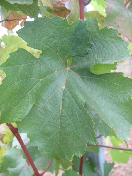 středně velké, pětilaločnaté bez znatelných výkrojů, bazální výkroj je otevřený s průsvitem; povrch listu je tmavě zelený, slabě puchýřnatý