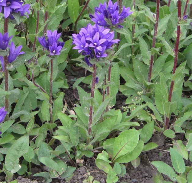 Campanula glomerata v trvalkové směsi s vysokým stupněm autoregulace. Průhonice 2009. Foto Kuťková
