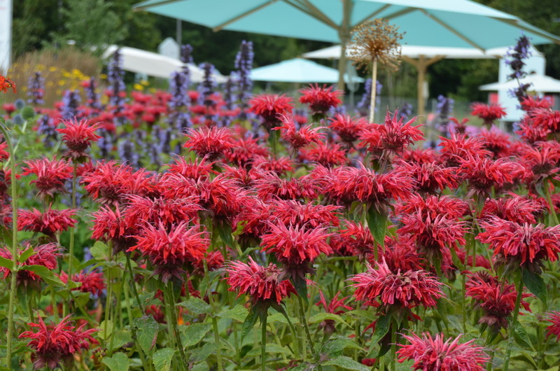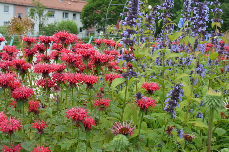 Monarda ´Cambridge Scarlet´v tradičním květinovém záhonu