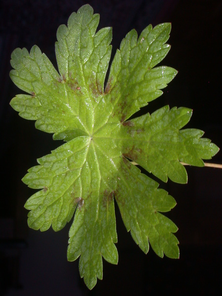 - dlouze řapíkaté (horní téměř přisedlé), v obrysu obvejčité, přes 0.1 m široké, dlanitě pětidílné s úkrojky nepravidelně zubatými, oboustranně žláznatě pýřité, často s kaštanovou kresbou (ne u subsp. lividum!), s brzy zasýchajícími palisty