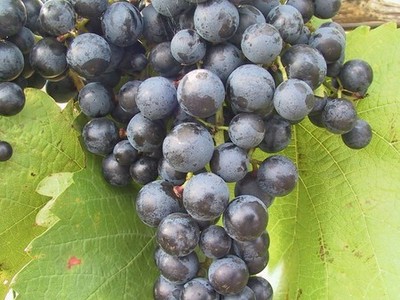 - středně velký, kuželovitý hrozen, často s křidélkem, poměrně hustý; bobule je středně velká, kulatá, tmavě modré barvy