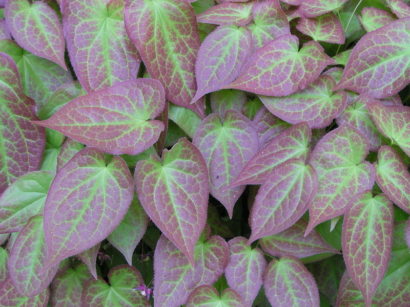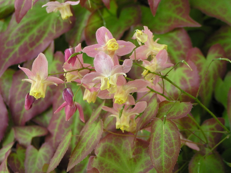 Epimedium x versicolor ´Cupreum´. Vybarvování listů při rašení.