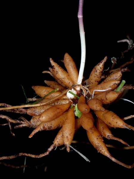 - svazčité, hnědé, zhlíznatělé adventivní kořeny z krátkého rhizomu