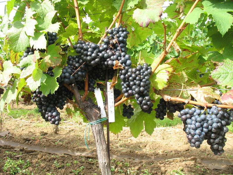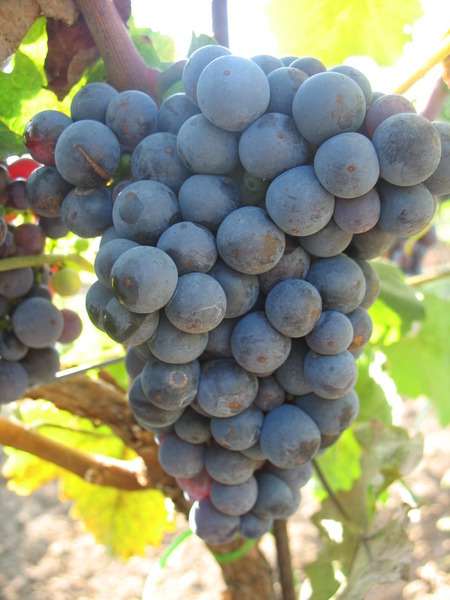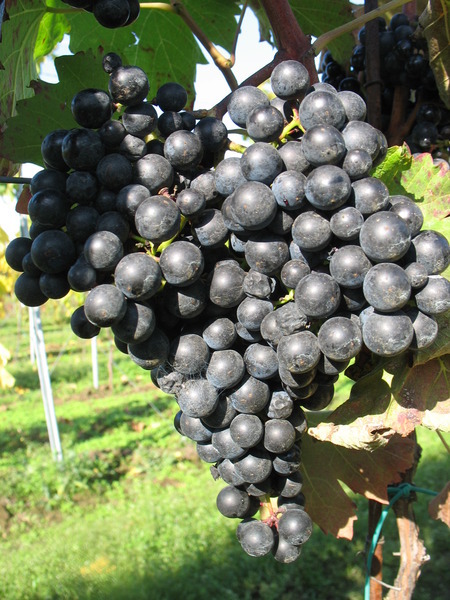 středně velký hrozen, křídlatý, spíše hustší; má středně velké kulaté bobule, tmavě modré barvy