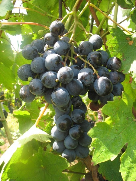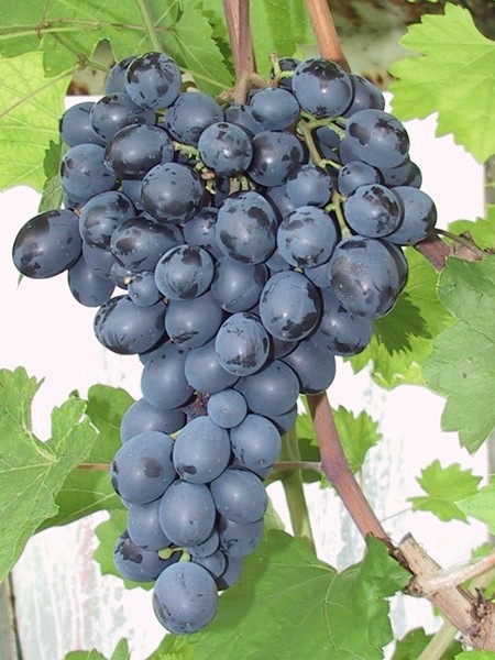 - velký hrozen, kuželovitý, středně hustý až hustý; bobule je velká, mírně oválná, fialovomodrá s voskovým ojíněním
