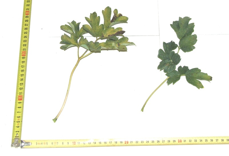 - střídavé, 2 x trojčetné, dlouhé, lístky eliptické, vejčité, dosti široké, převísající, terminální lístek nepravidelně zubatý, tmavě zelené