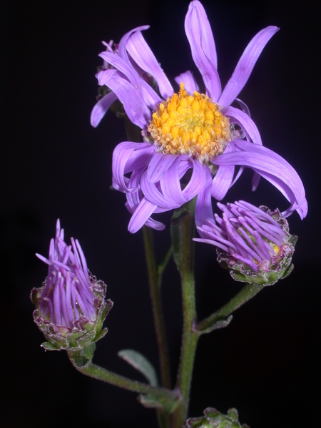 - pětičetné, různoobalné (kalich přeměněn v chmýr), srostloplátečné, paprsky souměrné, lineární, samičí, na půl palce dlouhé, modré až modropurpurové; kvítky v disku koleomorfní, oboupohlavné, žluté
