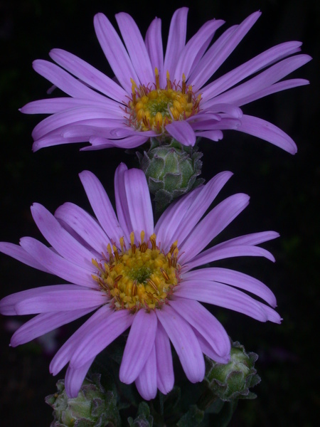 - poměrně veliké úbory s 2-3řadými zákrovy (lístky zákrovu obvykle tupé, purpurově lemované a brvité) a s 25-40 paprsky, seskládané v bohatých chocholičnatých latách až 0.3 m širokých