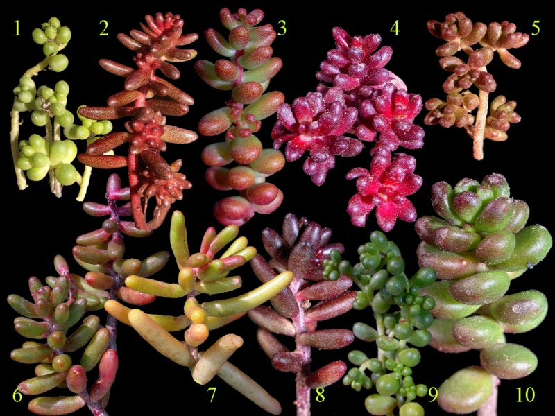 - Legenda ke grafické příloze 6 Uher-Oreosedum-varia: 1. O.album ´Chloroticum´; 2. O.album ´Murale´; 3. O.album ´Athoum´; 4. O.album ´Rubrifolium´; 5. O.album ´Valbona Form´; 6. O.album ´Färo Form´; 7. O.album ´Mulbrantii´; 8. O.album ´Coral Carpet´; 9. O.album ´Rhodopaeum´; 10. O.album ´Laconicum´
