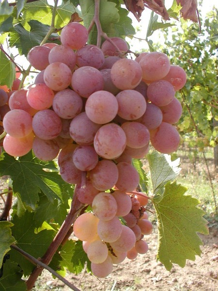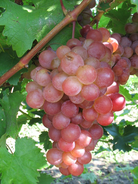 - velký až velmi velký, kuželovitý, spíše řidší hrozen; bobule je kulatá, velká až velmi velká, fialovo růžové barvy