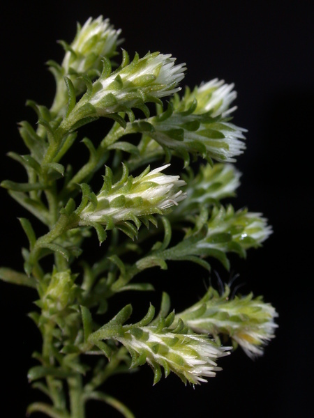- drobné a početné, v hustých hroznech a posléze latách seskládané úbory s drsně pýřitými (ne však žláznatými) a měkce osténkatými zákrovními listeny v 3-5 řadách, s 10-20 bílými nebo růžovými paprsky a 6-14 (zřídka více) žlutými kvítky disku