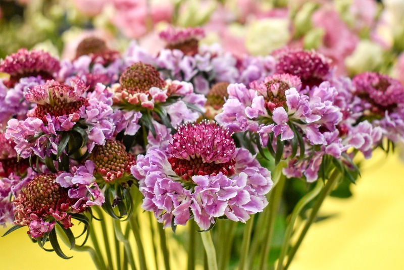 Použití Scabiosa atropurpurea ve floristické tvorbě.