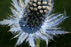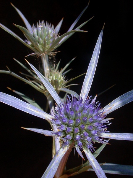 - trsnatě vzpřímená trvalka obvykle do 0.8 m vysoká s širokými listovými růžicemi a vzdušnými ocelově modrými květenstvími