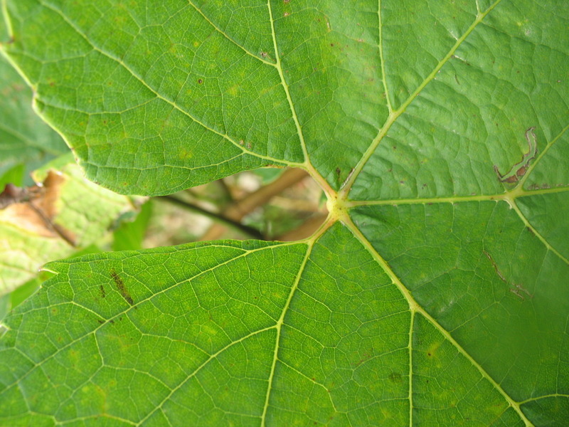 - středně velké, tří až pětilaločnaté s naznačenými výkroji, bazální výkroj je úzce otevřený, u dospělých listů na obou stranách ohraničený cévou; povrch listu je tmavě zelený, lehce puchýřnatý