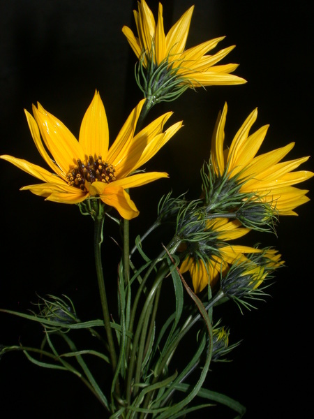 - úbory s 10-20 žlutými paprsky, s padesáti nebo více kvítky v malém disku a zákrovem z 40-50 nitkovitých, nežláznatých, odstálých listenů