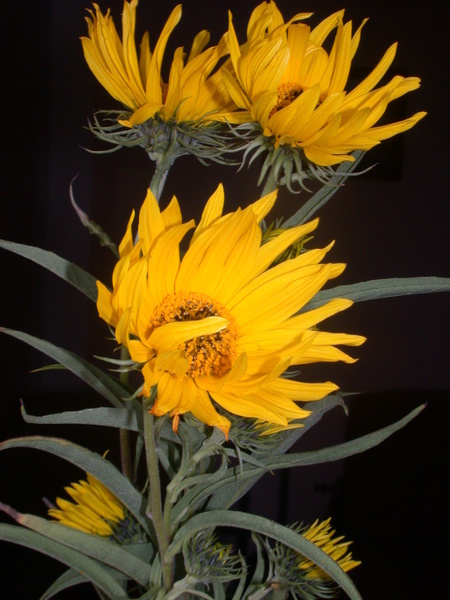 - zhruba pět odrůd lišících se vzrůstem a odstíny žluti: vedle klasických ´Autumn Glory´a ´Golden Pyramid´ bledě žlutá ´First Light´ nebo sotva půl metru vys.´Table Mountain´ a ´Low Down´, hybr.´Cosmic Whisper´