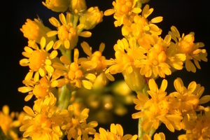 - drobné úbory s 5-15 žlutými paprsky a méně než deseti kvítky disku, seskládané v bohatých pyramidálních latách