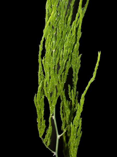 - ovíjivé svěže zelené rostliny s vícenásobně a planárně větvenými stonky, odvětvujícími konečně v drobná lineární kladodia