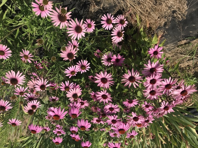 Echinacea ( v pozadí) v experimentu (přímý výsev).