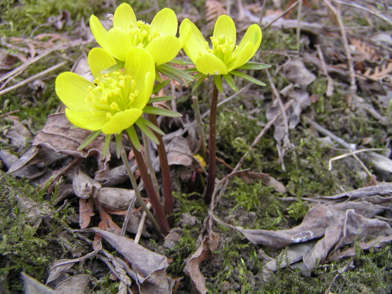 Eranthis hyemalis (vpravo) a Eranthis cilicica (vlevo). Foto Kuťková