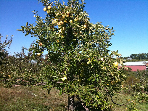 ukázka plodů a stromu odrůdy ´Golden Delicious´