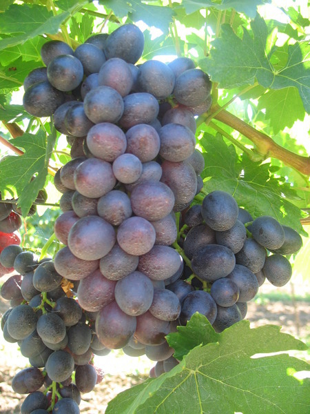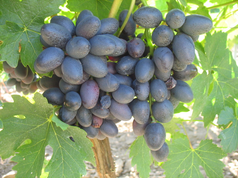 - středně velký, kuželovitý, středně hustý hrozen; bobule je velmi velká, vejcovitá, se špičatým vrcholem, modročerné barvy