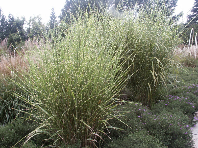 Kultivar ´Zebrinus´ vzadu, ´Strictus´ vepředu - Botanická zahrada a Arboretum MENDELU v Brně. Foto: Kuťková