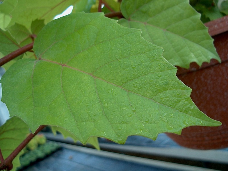 střídavé; vejčité nebo podlouhlé, 7-10 x 4-7 cm dlouhé, se srdčitou bází; lysé, pravidelně hrubě pilovité až celokrajné, zelené, lesklé; narůžovělé řapíky