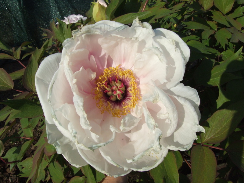 poloplné, petaly světle růžové barvy, v horní části světlejší, vrcholek zubatý, v průměru až 20 cm, květy málo vonné