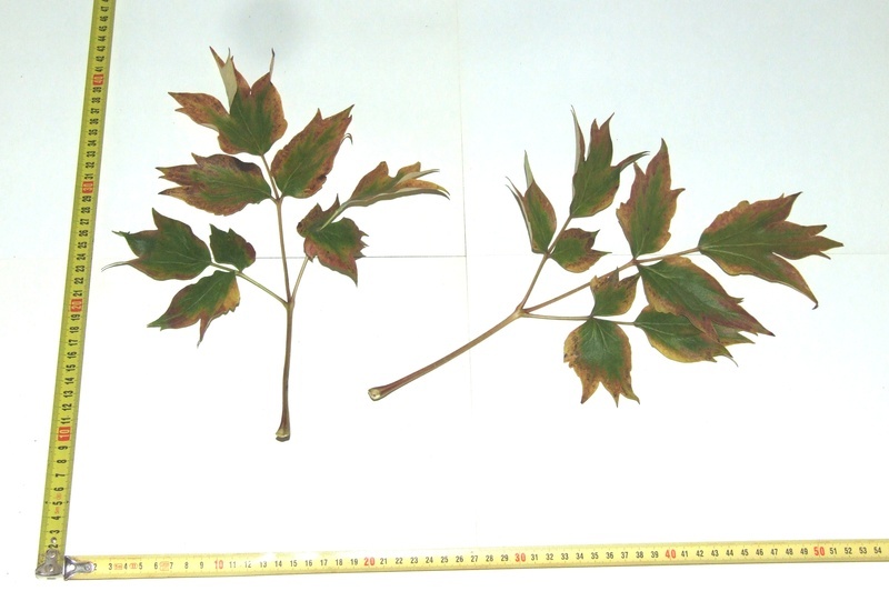 střídavé, 2 x trojčetné, dlouhé, lístky eliptické, vejčité, terminální lístek nepravidelně zubatý, okraje listů načervenalé