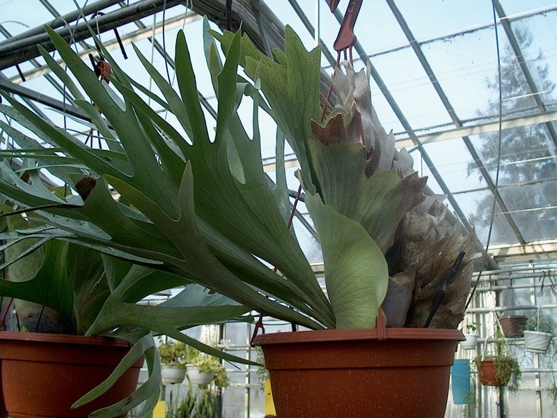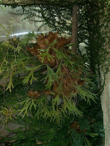 - Platycerium grande - celkově robustnějsí habitus; trofofyl výrazně zvlněný, rovněž laločnatý