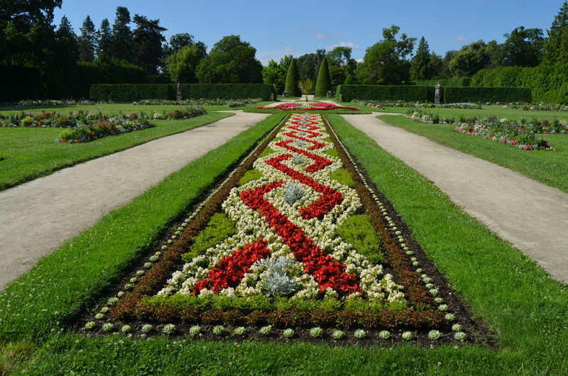 Použití rodu Alternanthera v kobercovém záhonu. Zámecká zahrada Lednice, 2021. Foto: T. Kuťková