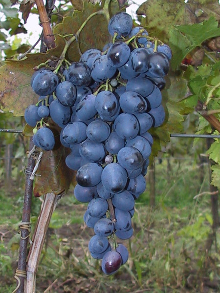 velký hrozen, kuželovitý, středně hustý až hustý; bobule je velká, mírně oválná, fialovomodrá s voskovým ojíněním